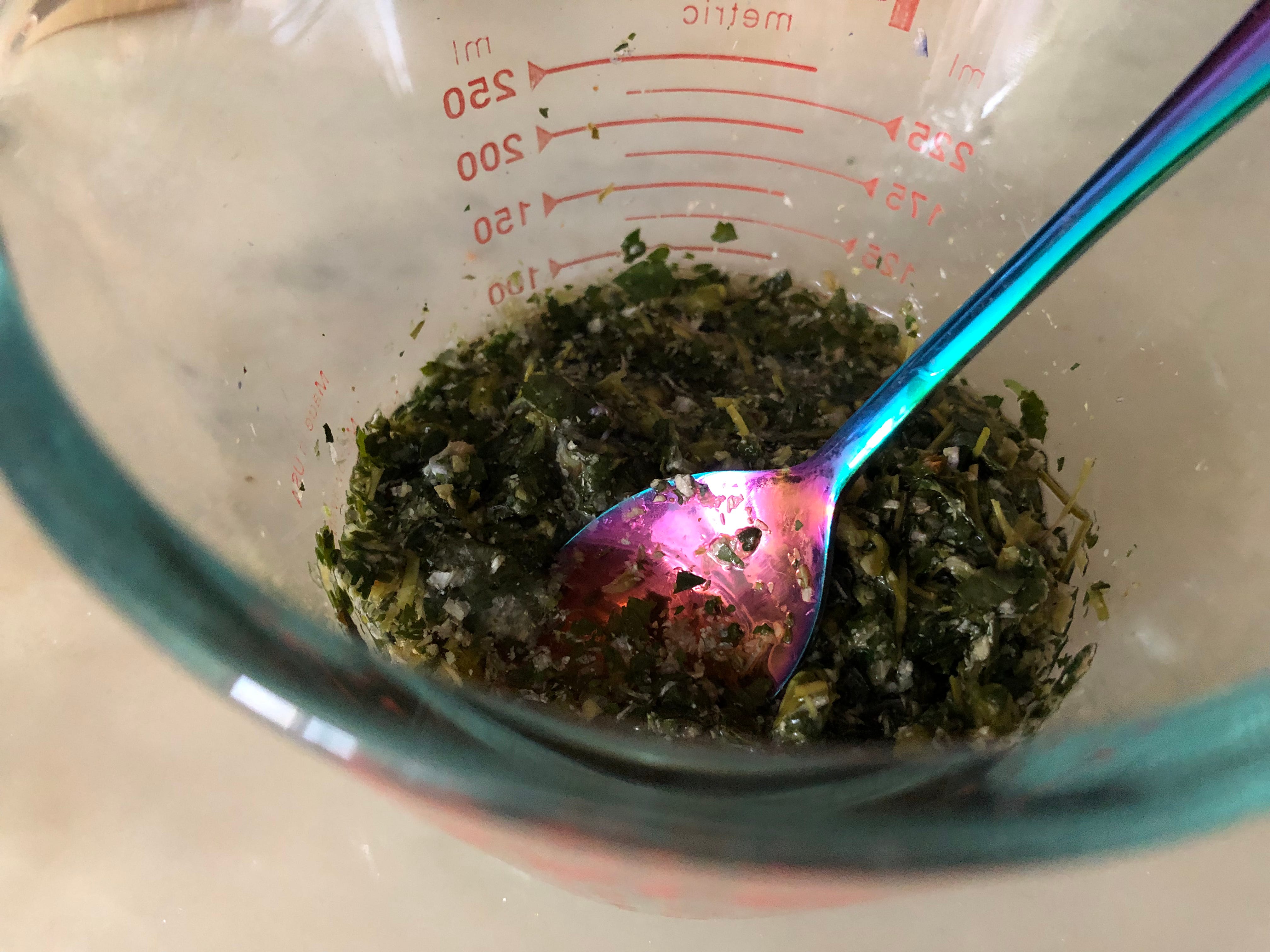 Add the dried violet herb to a small glass measuring cup, and pour 1/4 cup of boiling water over it. Stir in the cinnamon, if you are using it. Let the blend sit overnight, to extract the minerals fully and get a super strong infusion.