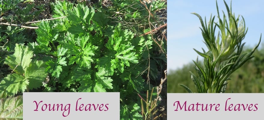 Mugwort leaves are green on the top, white underneath. Image from Michigan State University Medicinally, Mugwort is most famous for its support with dreaming. The sign of Pisces is also strongly associated with dreams.